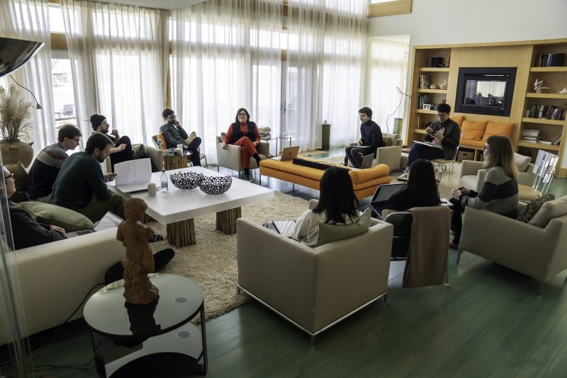 Stimulated by the beautiful surroundings of Halcyon Estate in Easton, Composing Fellows are buzzing with new musical discoveries and connections after spending a week experimenting, workshopping with performers Tom Kraines (cello), Chelsea Meynig (flute), and Sean Bailey (clarinet), and sharing feedback and ideas during meals and walks with Studio Lead Mentor Gabriela Ortiz.